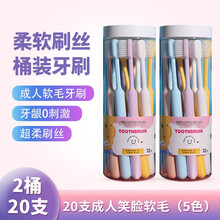 优洁护桶装软毛牙刷成人家用细毛超柔刷毛学生情侣柔软刷丝牙敏感家庭装 【20支2桶软毛牙刷】 20支